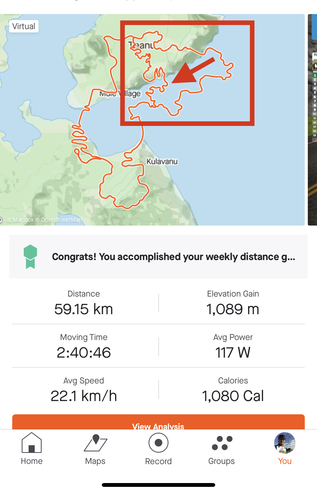 Hi, I did this route again for the 2nd time thinking that I didn’t ride enough during my first try. I kept on going and I was routed to a loop and ended up on the same area. But I already did 59km and still no badge has appeared. Anything I’m missing here?