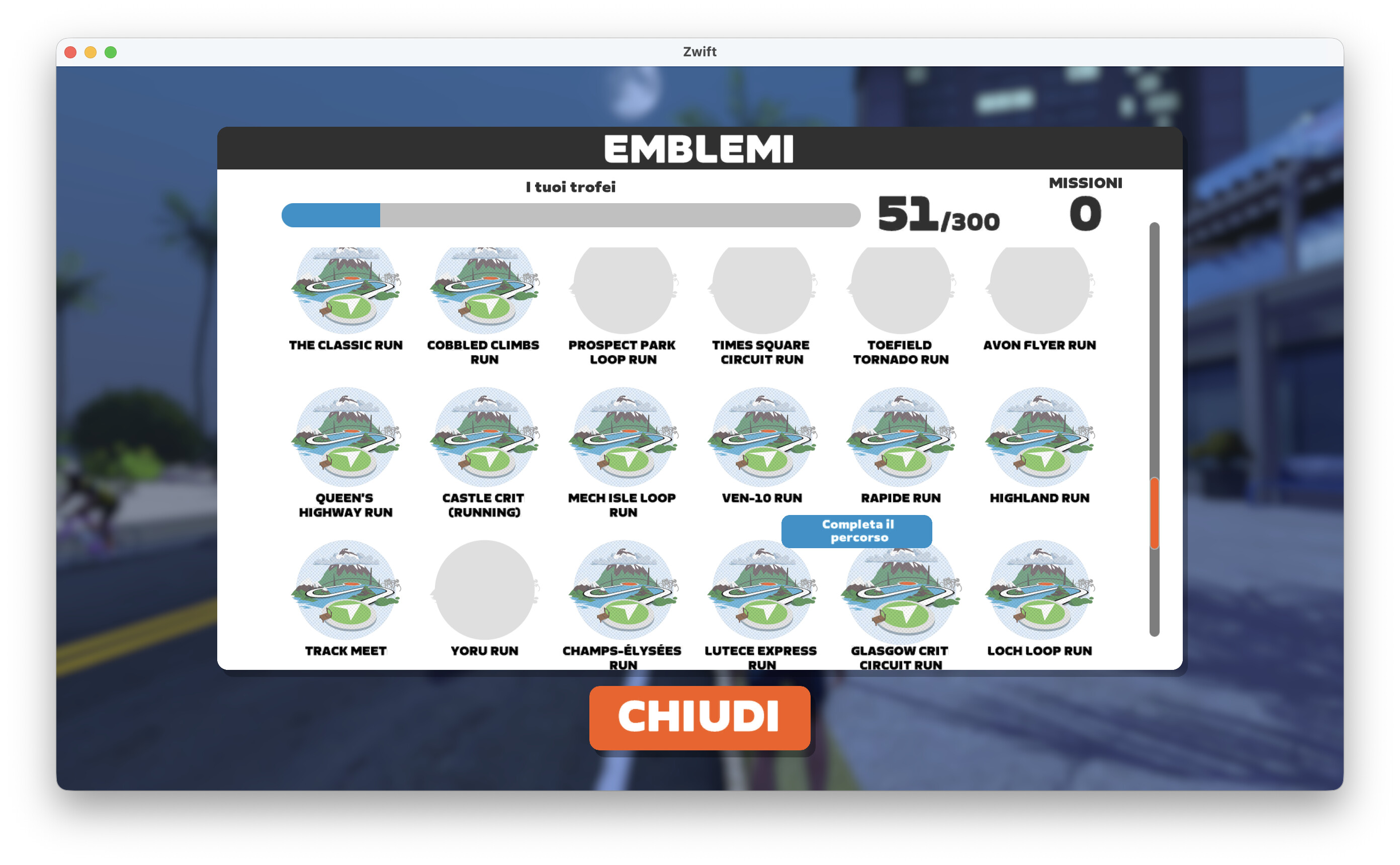 Out of curiosity, I completed the Yoru Run zwiftinsider.com/route/yoru-run/ (I quickly found an event taking place there) zwift.com/activity/1986371066729086992 but the green badge didn’t appear, and all the grey badges disappeared again: