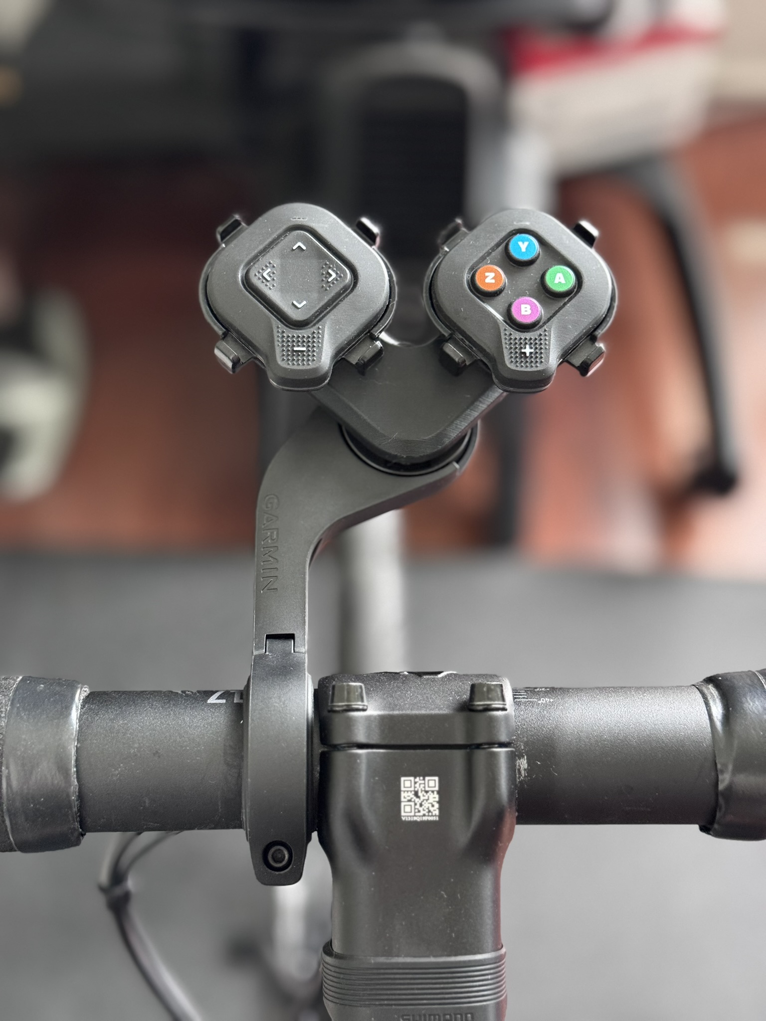 I was already using my Garmin mount for my old phone, which I use with Zwift. With the new bar mounts released, I wanted to add the Zwift clickers in the same spot. Using the STEP files, I designed a single mount that holds both. Now the phone sits nicely between my hands, and I can easily shift gears. Very happy with this setup!