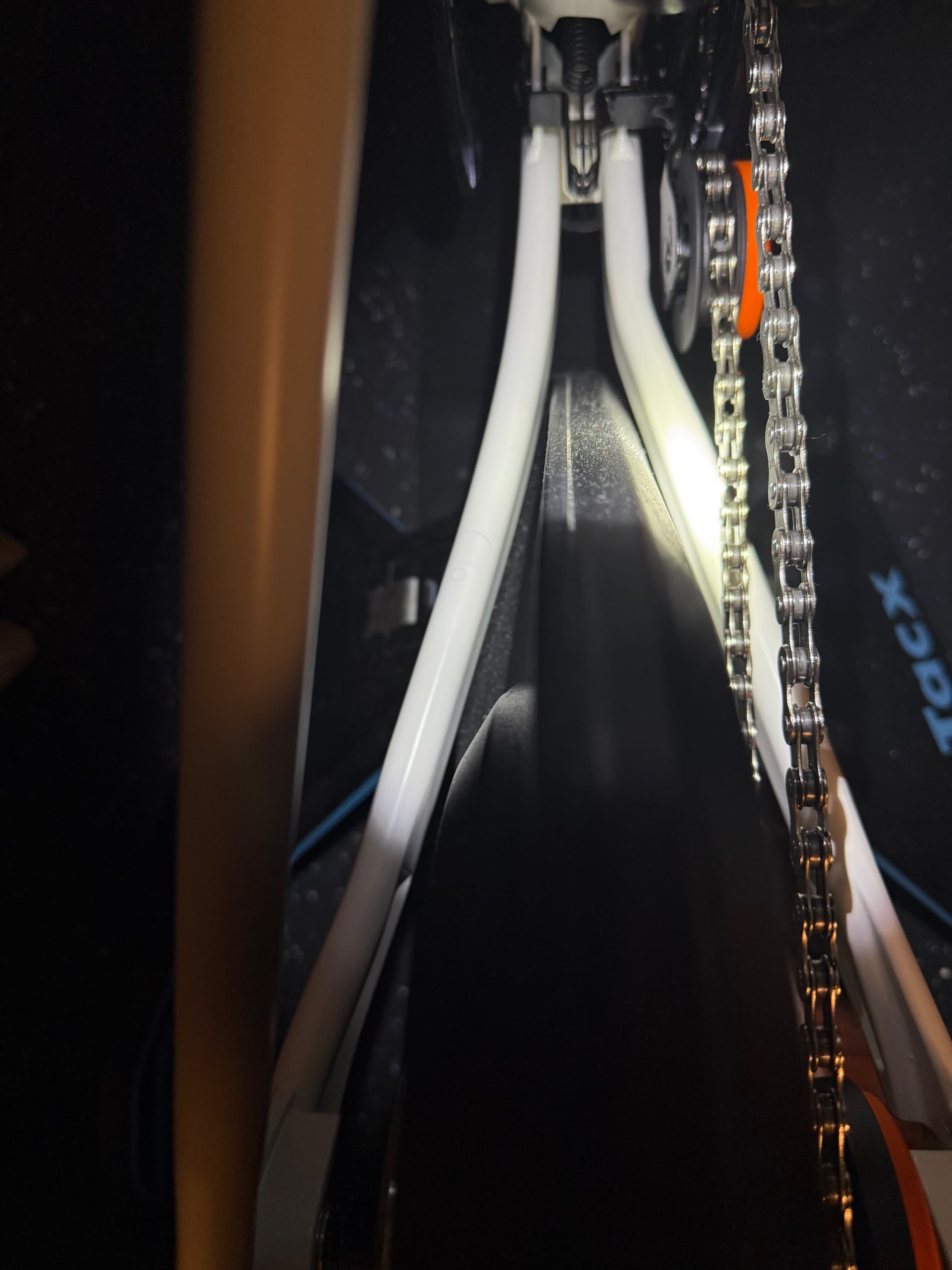 I did not realise that the front end of the right chainstay was so pinched in. Clearly Zwift only tested the protos on certain hometrainer models. Yup this is a “no go” for 2 smart and 2SE